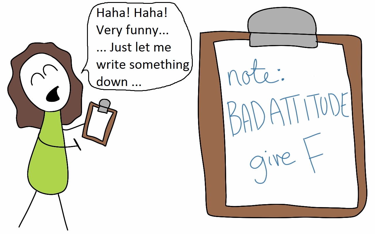 This was genius. I bet no one screwed around with her in group assignments. I bet she didn’t end up doing all the work. I bet people listened to her ideas. That’s what I call a success.