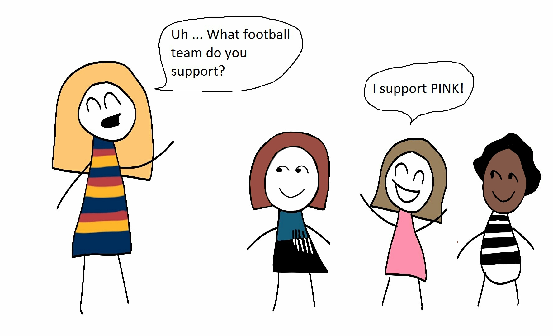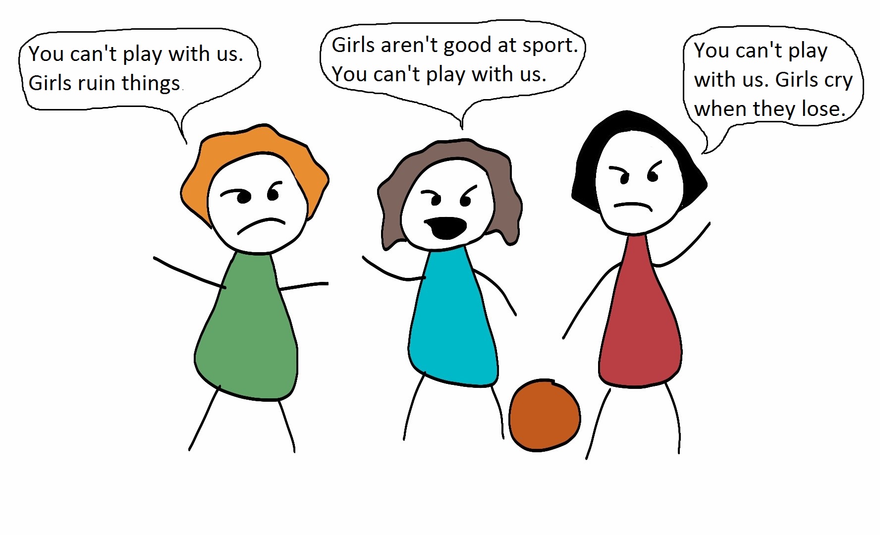 But then something changed. I became aware that boys got to wear lots of colours, and I learned that some of the games I liked playing weren’t for girls. I didn’t like playing with dolls, but I loved climbing trees, and I preferred Pretend Time Machine to Pretend Families-With-Rigid-Traditional-Gender-Roles. Some children excluded me from the games I wanted to play.