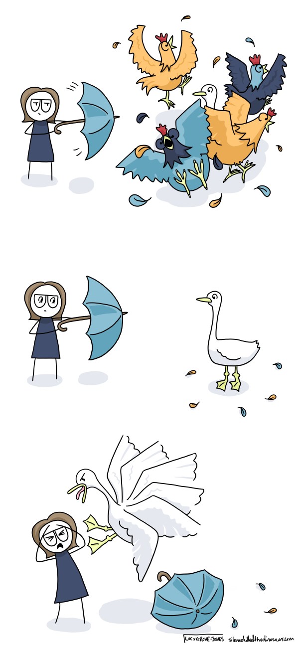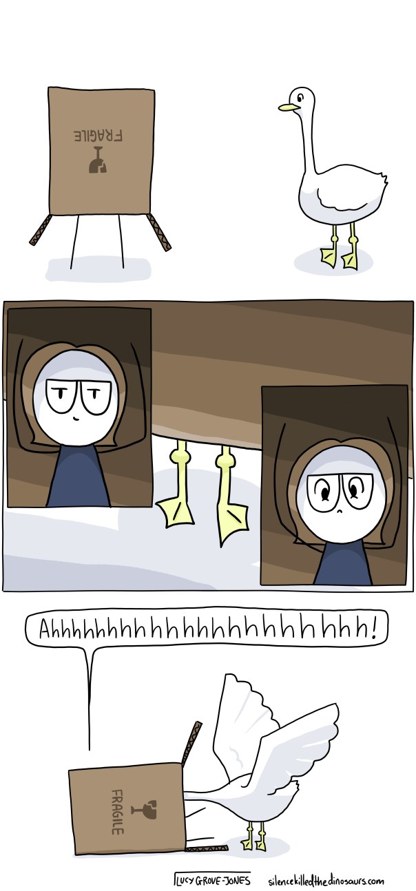 If you haven’t met a goose and think I’m exaggerating for the sake of humour, enjoy it while it lasts. Your Goose Story will come for you. Maybe it will happen on a picnic. Maybe when you stop your car on a road trip for a quick pee a goose will catch you with your pants around your ankles. Maybe it will happen inside your own house. One day, you’ll learn.