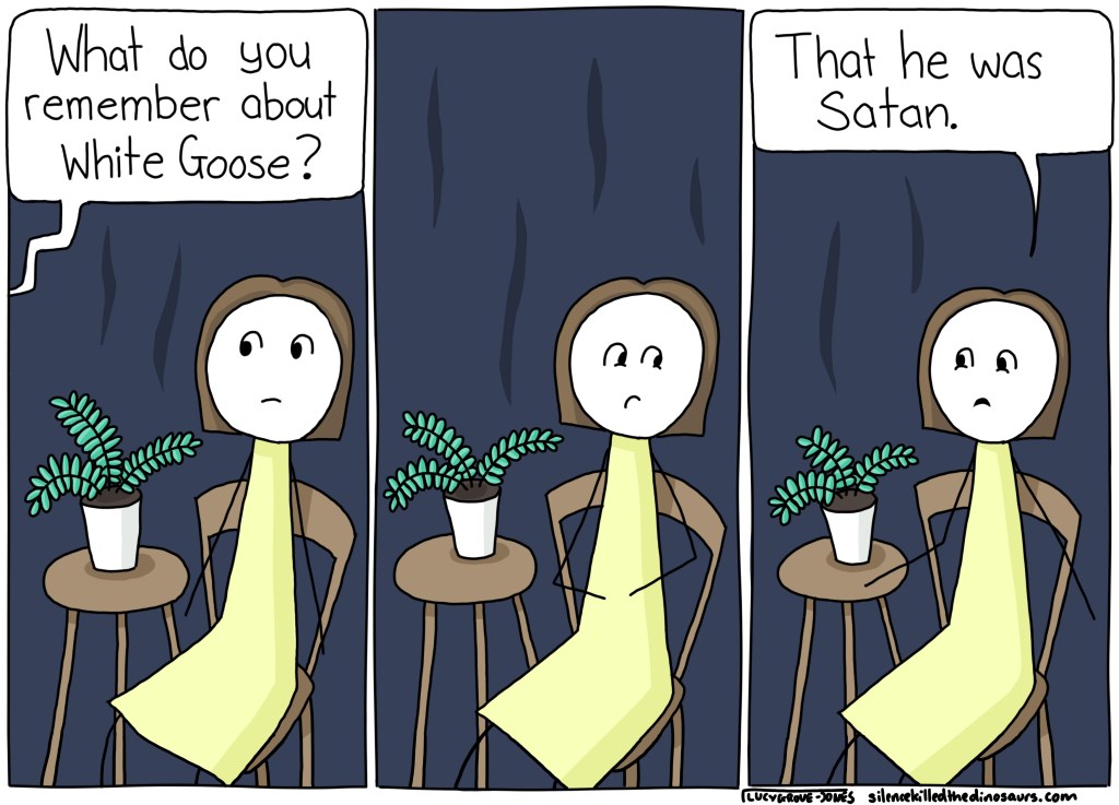 Up until this point, my parents’ preferred method of Ruining Everything was letting my sister sit in my chair and stopping us from watching Jurassic Park on endless repeat. The goose came as a surprise.