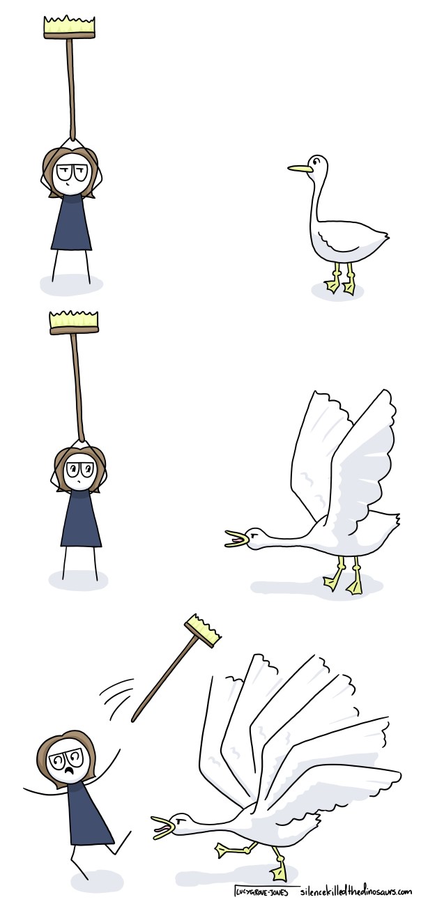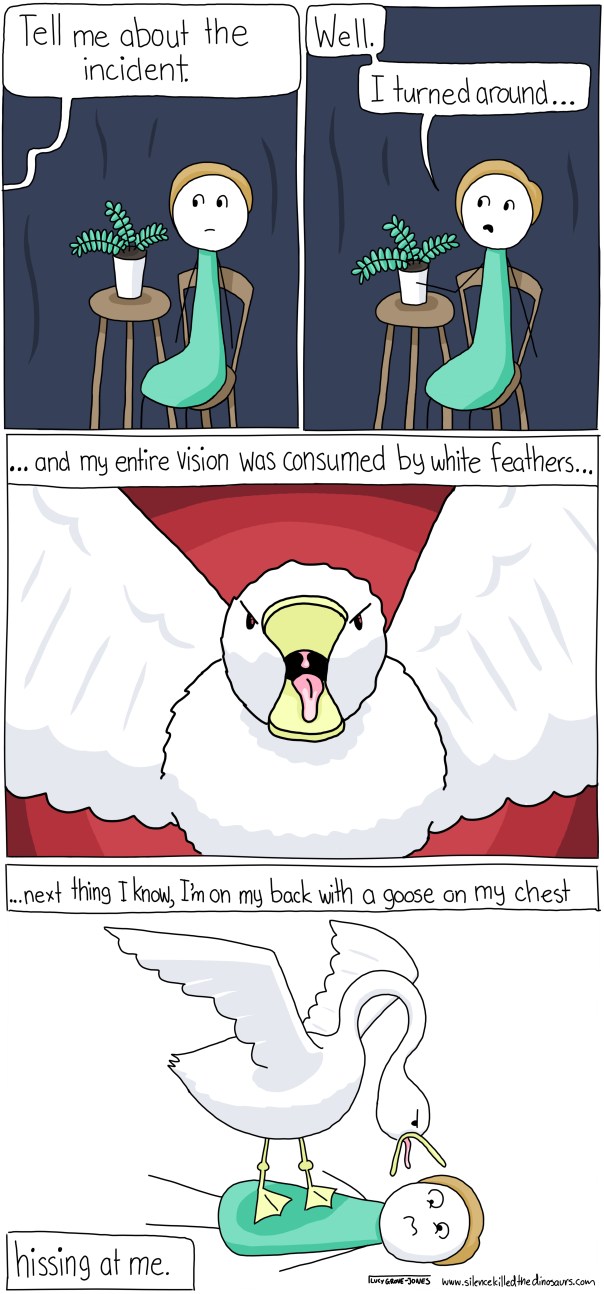 If you have ever met a goose, you know where this is going. You probably have your own Goose Story. In fact, you are probably cowering behind the couch right now because if you’ve met a goose and aren’t afraid of geese, either your name is Chuck Norris or you’re lying. And even if you are Chuck Norris, I’m sceptical.
