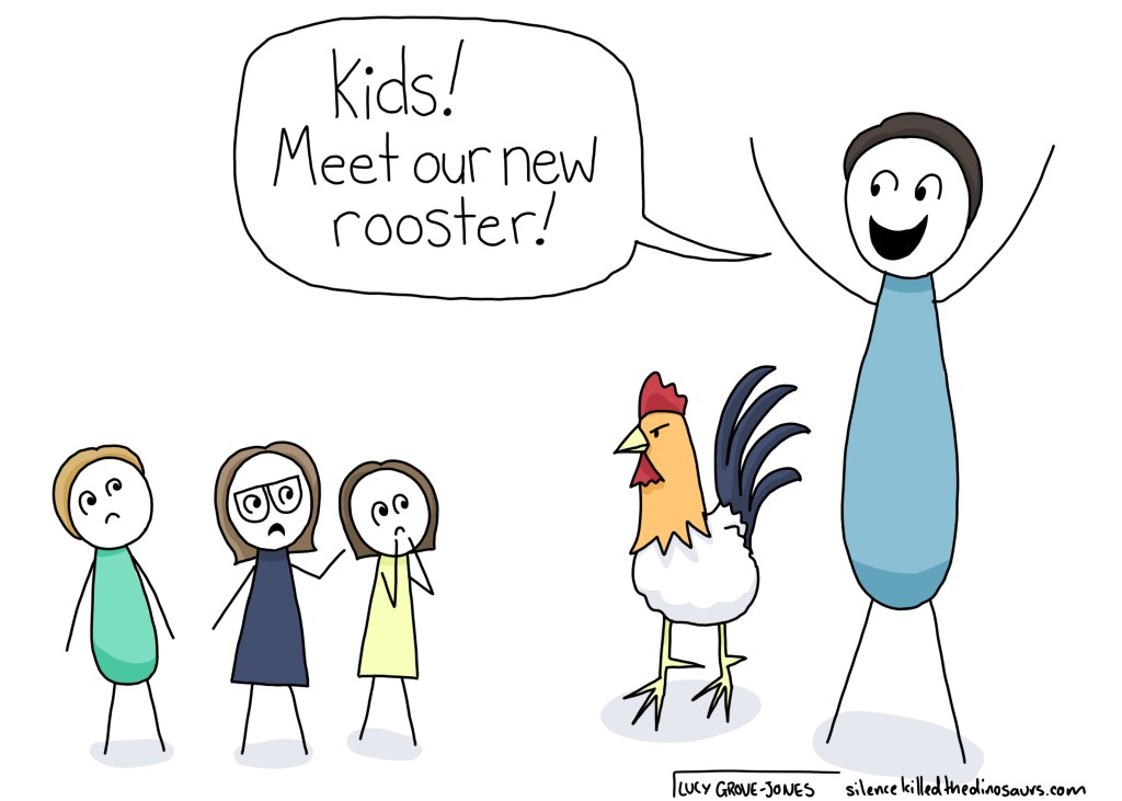 Our yard was no longer our yard, it was White Goose’s. I could not come and go as I pleased. I could not play where I liked. It was like getting the pink cup when I really wanted the green one. White Goose was, figuratively speaking, sitting in my chair. And my parents were allowing it.